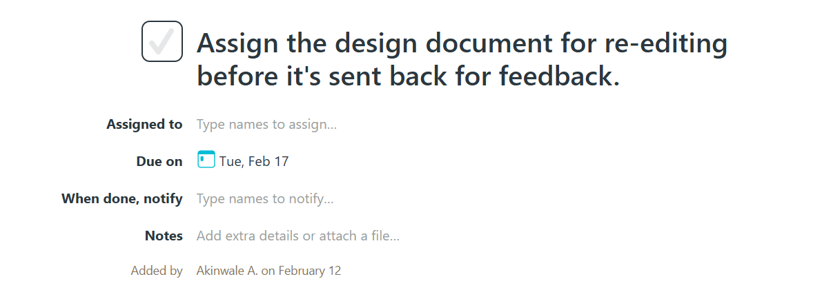 Basecamp's to-do lists let you break work into tasks, assign them to team members, and set due dates.