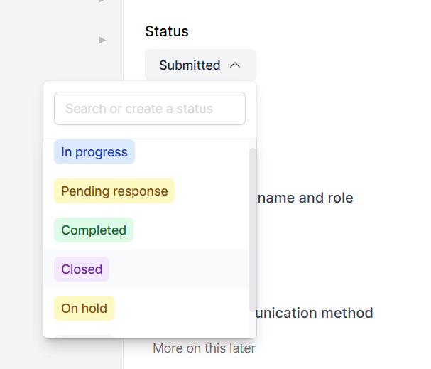 Once they submit the form, the request automatically appears in your internal dashboard, where you can review it, assign it to a team member, and move it through your workflow stages.