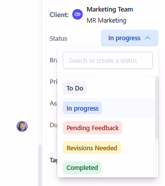When a client makes a request, whether through the custom intake form or they paid for a service from your catalog, you can auto-assign or manually assign it to someone on your team.