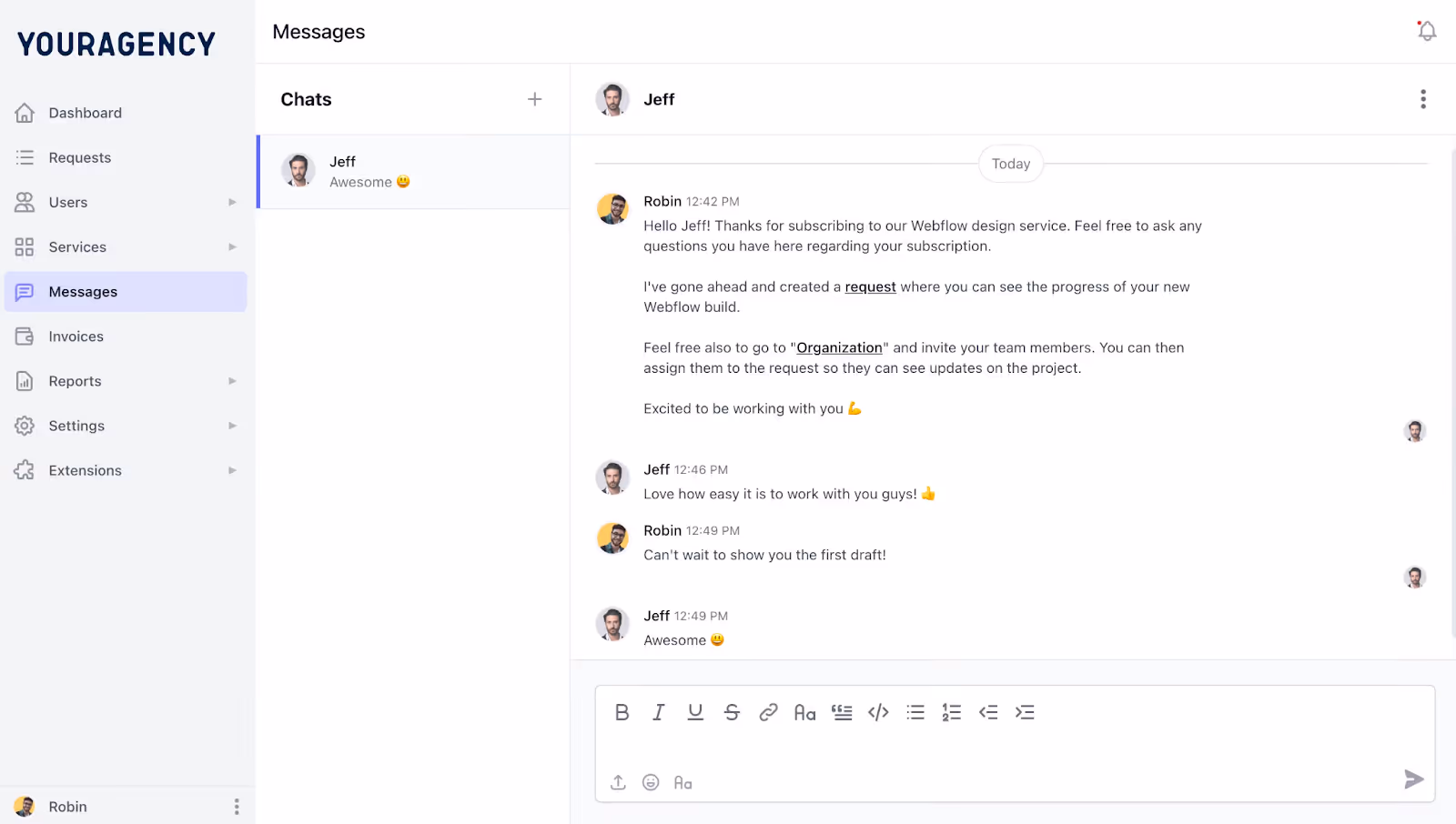 This way, they have access to their existing projects, they can give feedback when necessary, and can also give more context via the messaging feature if you need to understand more about the project.