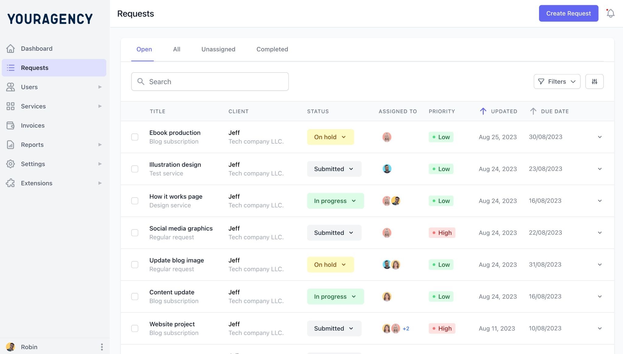 As shown in the image, each client's requests stay organized in one view, so nothing gets lost.