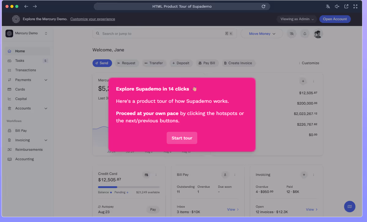 Supademo lets you record a walkthrough of your offer (say, the onboarding process or your Webflow design workflow), and turns it into an interactive experience that feels like a guided tour.