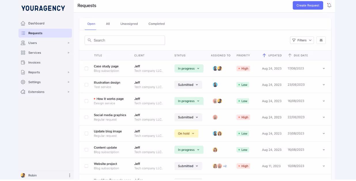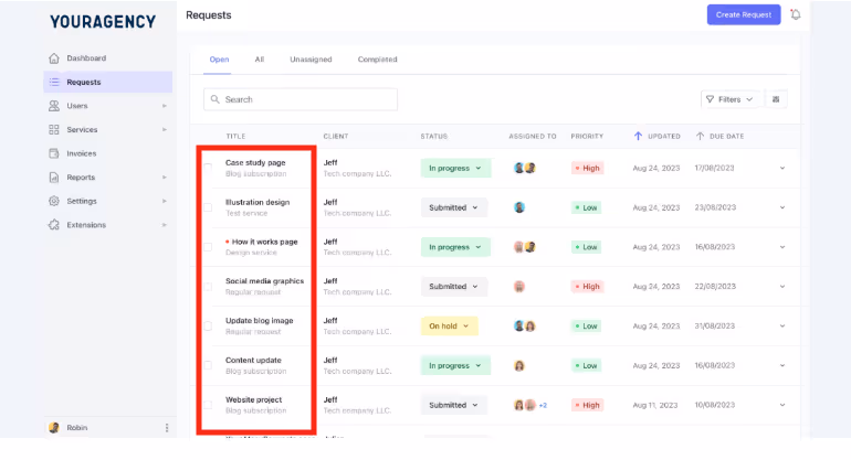 ManyRequests has a self-serving dashboard that allows your agency to communicate with your clients and vice versa.