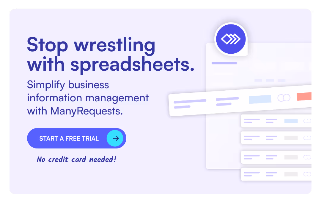 Growing creative agencies outgrow spreadsheets fast. Like that agency owner who's looking for better alternatives to Google Sheets, you may also need to either improve on how you collect and use client information with a project management tool like ManyRequests or manage the problem until you can't anymore.
