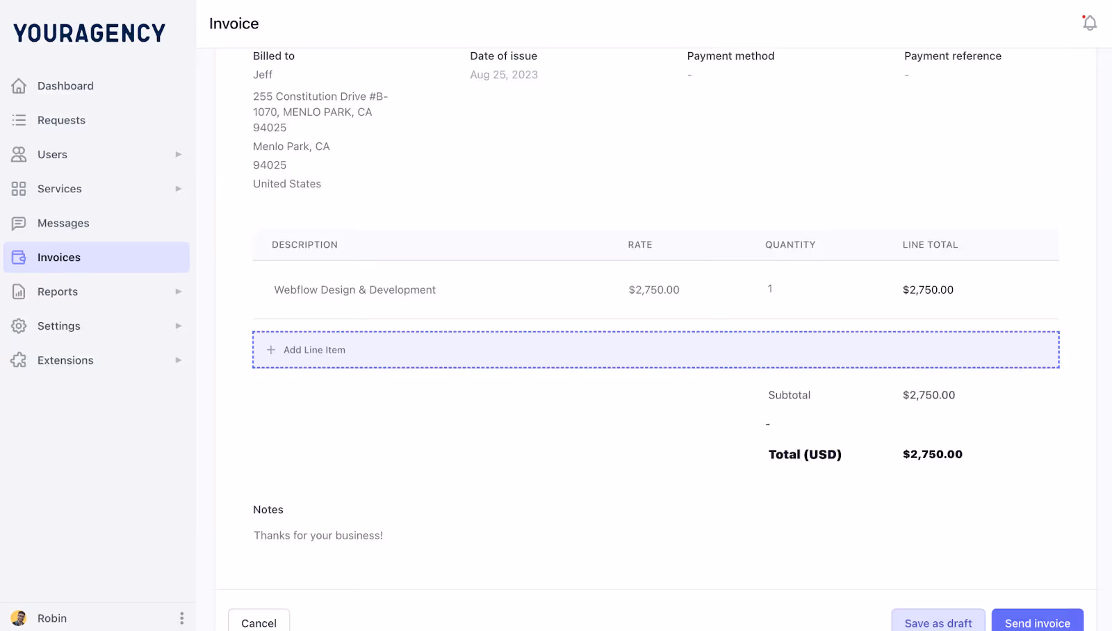 Clients see their invoices in the same portal where they submit requests and review work. That makes the process feel simple and clear.