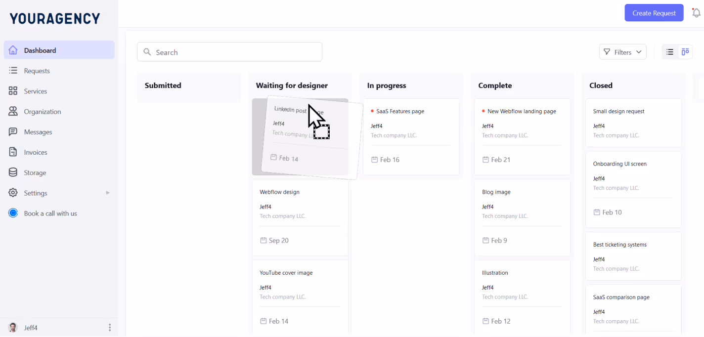 And you can do that with ManyRequests as your agency resource management software to track time, automatically file invoice, create productized services, and easily onboard your clients to the client portal.