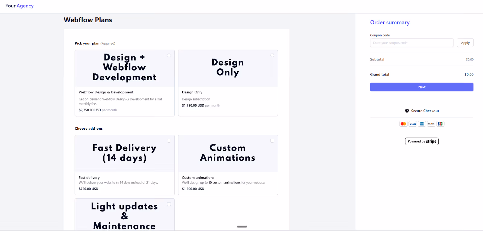 Your checkout page can look like this, and your services will look like this, especially if you embed it on your website: