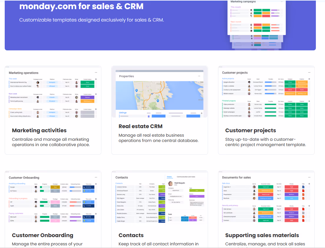 1. Template library to accelerate new projects: Monday.com offers pre-built templates for marketing campaigns, product launches, content calendars, and client onboarding.