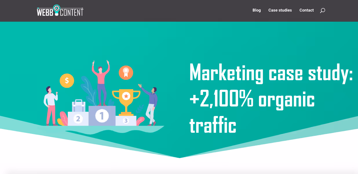 Webb Content did this differently with a financial services client: organic traffic grew from 1,000 to tens of thousands of monthly visitors over 18 months, the client became a known name in their space, and conversions went up 400%.
