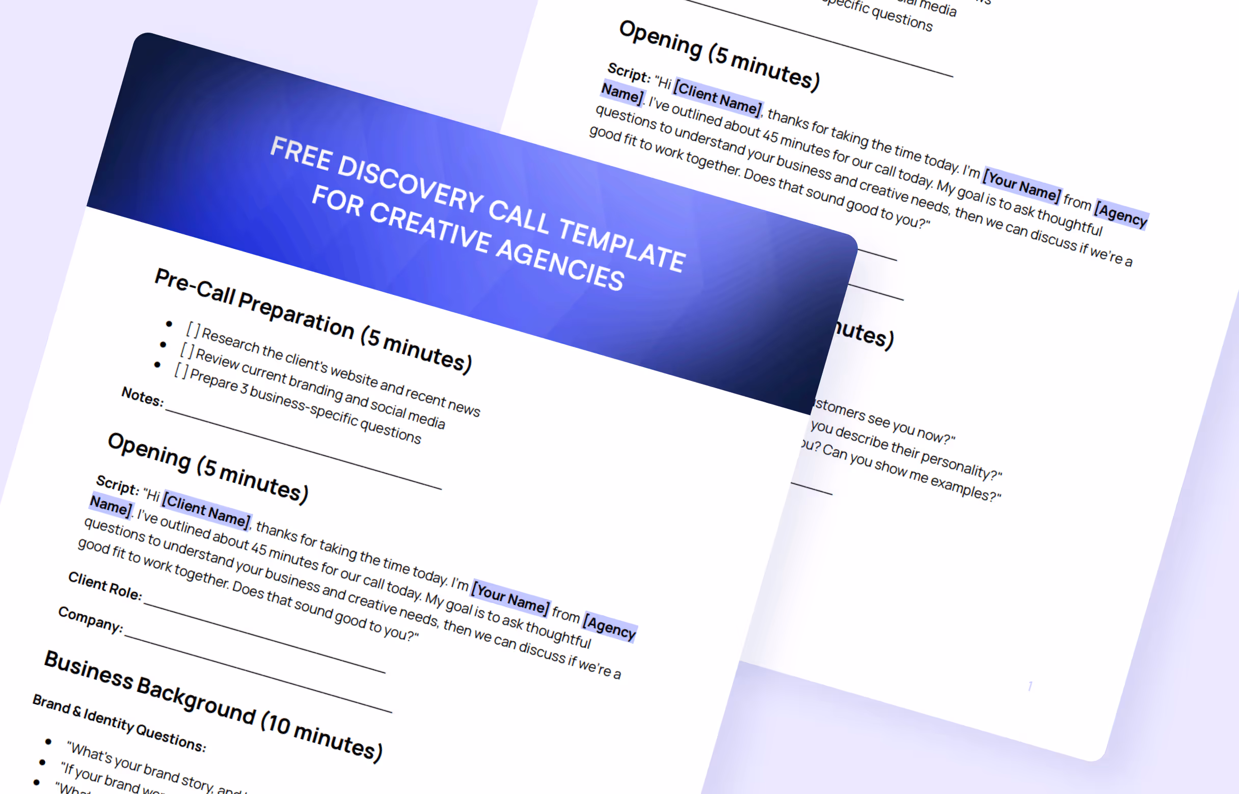Most discovery call templates are for product salespeople, but creative work differs. You're not just selling services, you're partnering with clients to solve complex brand and design problems that require deep understanding and creative thinking.